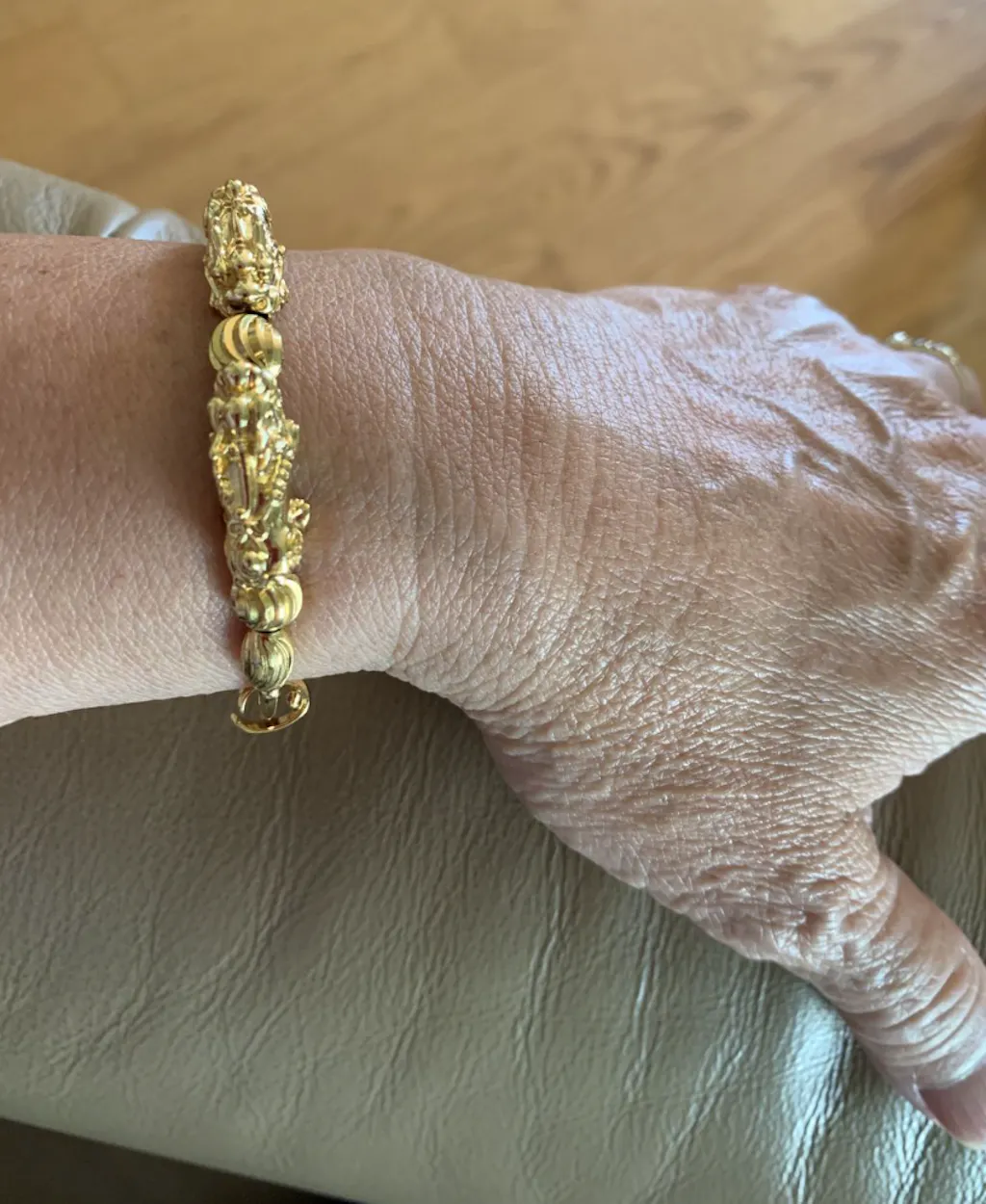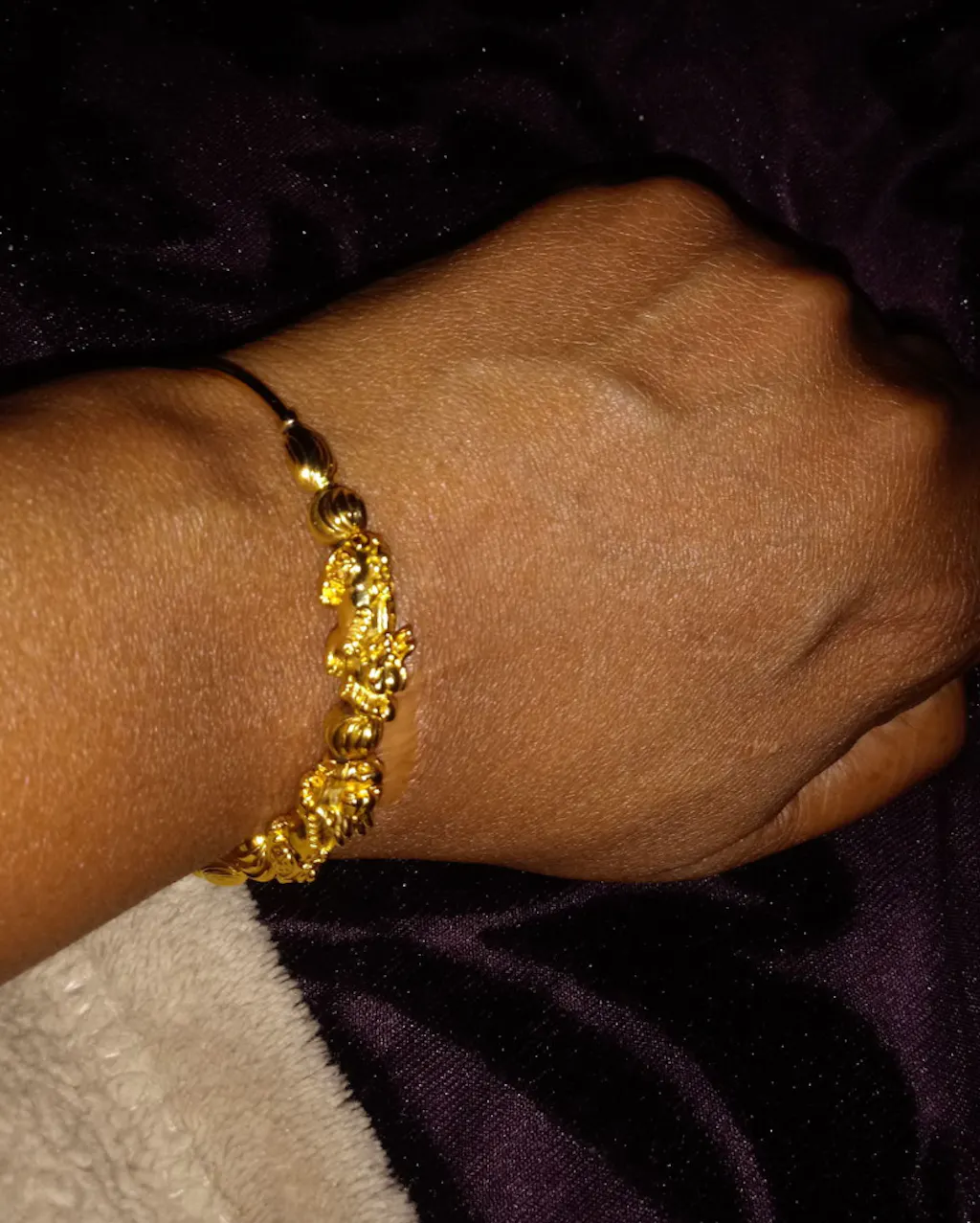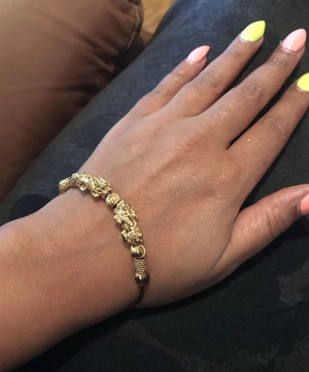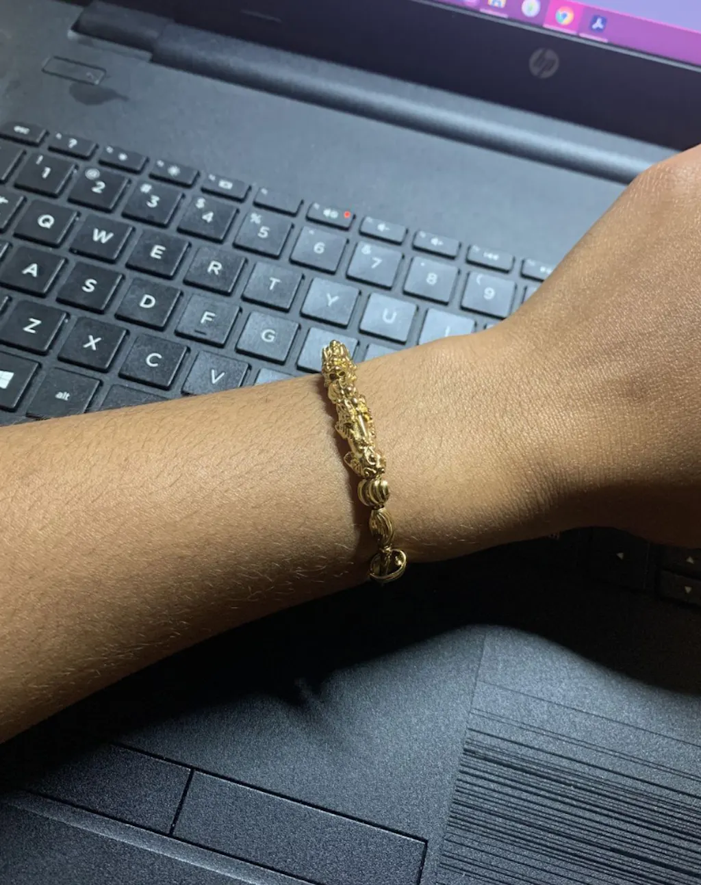 Step into abundance with the radiant charm of the Golden Pixiu Bangle — a timeless talisman believed to attract wealth, safeguard blessings, and energize your personal power.