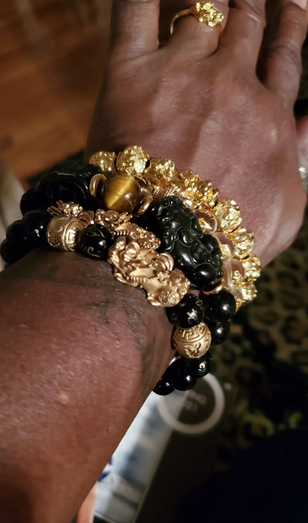 This bracelet features intricately sculpted Pixiu charms — a revered creature in Chinese culture known for its ability to draw wealth from all directions while protecting it from loss. Traditionally worn to enhance Feng Shui and support financial success, the Pixiu is especially favored by entrepreneurs, investors, and anyone seeking stable fortune.