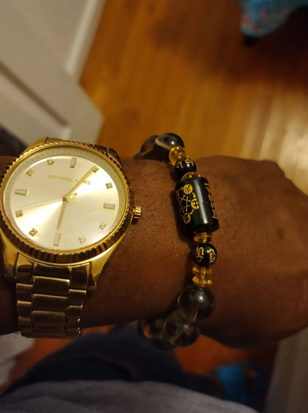 Gold-Engraved Mantra Bead — A sacred symbol believed to amplify blessings and offer spiritual protection.