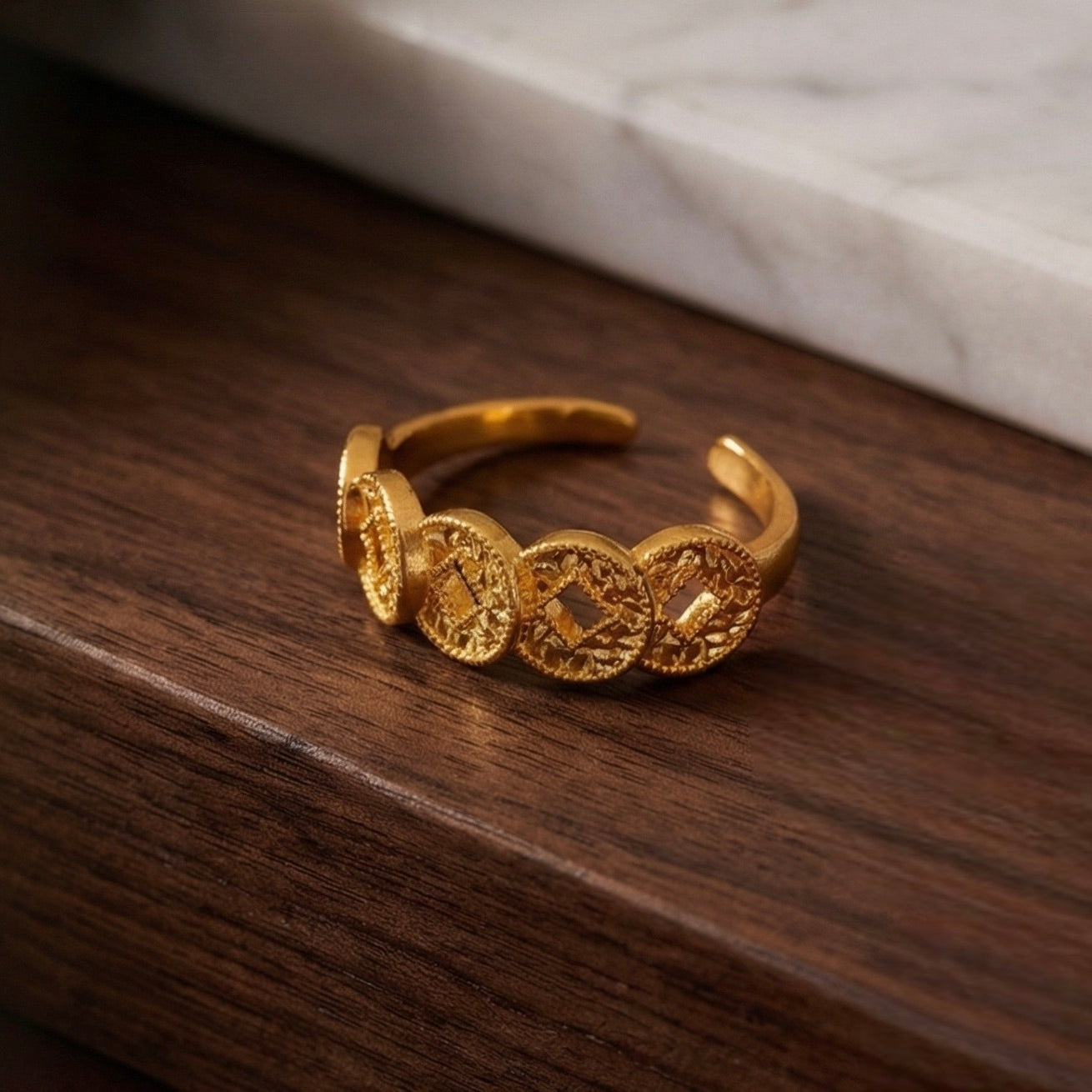 The Five Emperors Coins Open Wealth Ring is a powerful symbol of prosperity and protection inspired by ancient Chinese tradition. Featuring the legendary Five Emperor coins, this ring is believed to attract wealth, stabilize financial energy, and safeguard good fortune.
