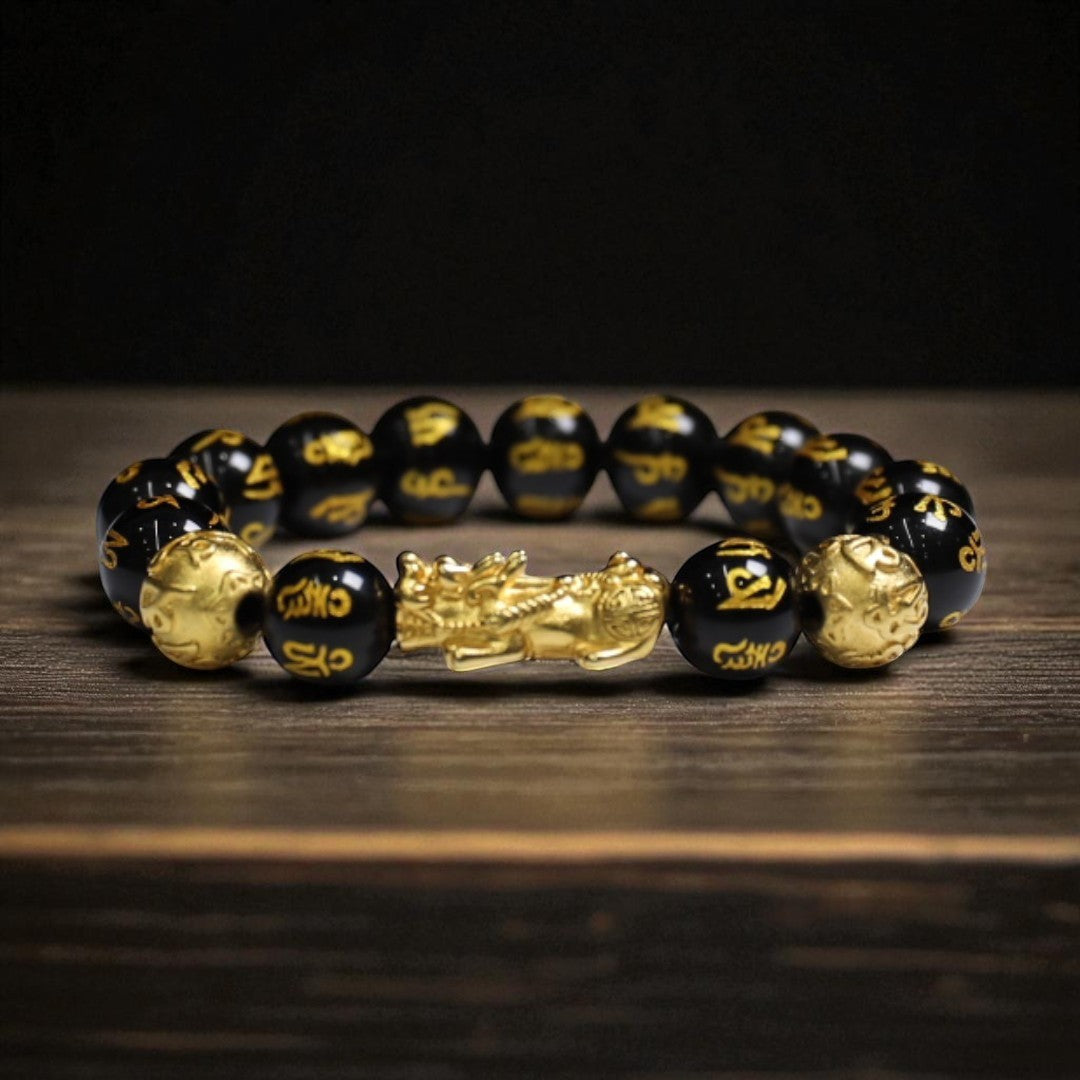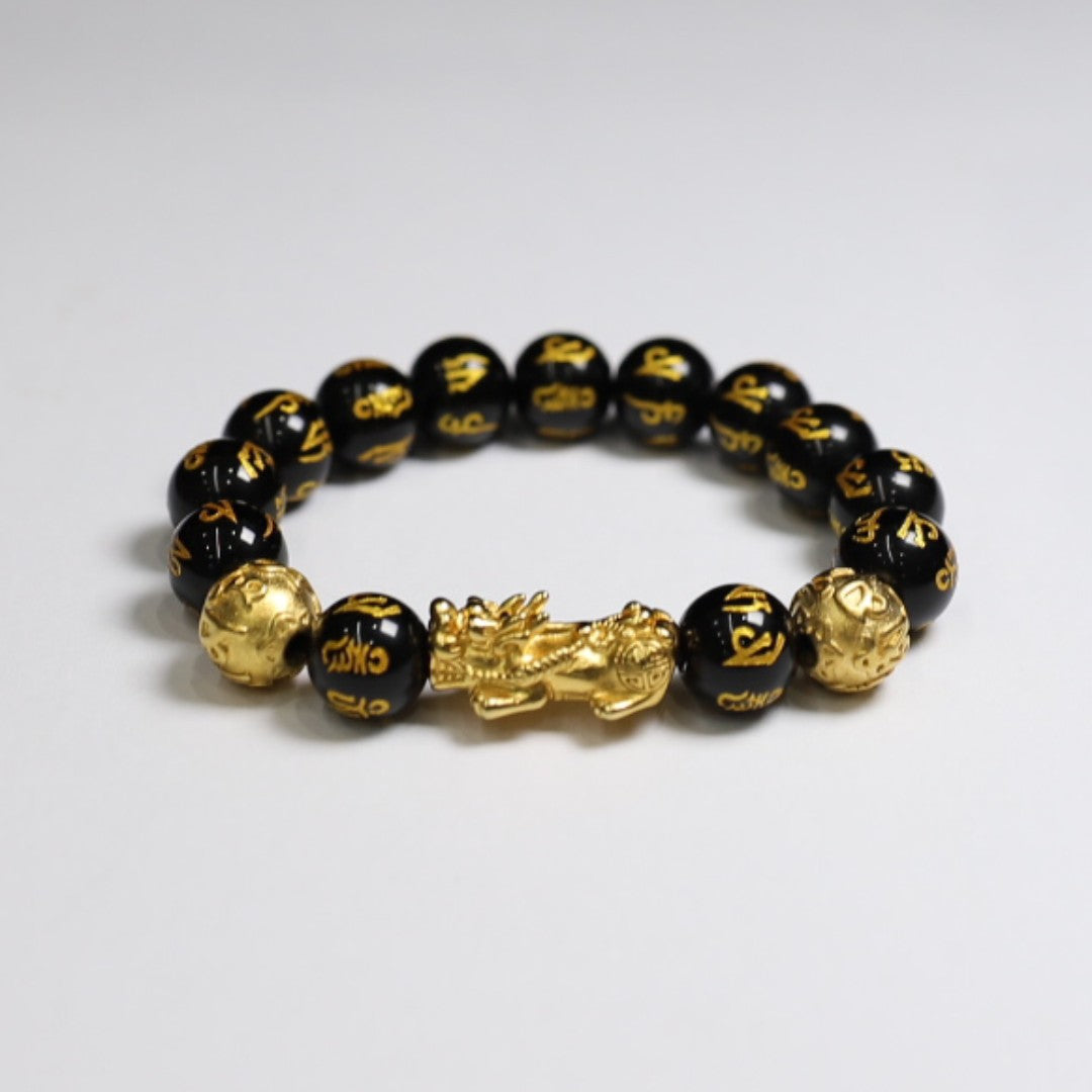 Pixiu Wealth Feng Shui Black Obsidian Bracelet
