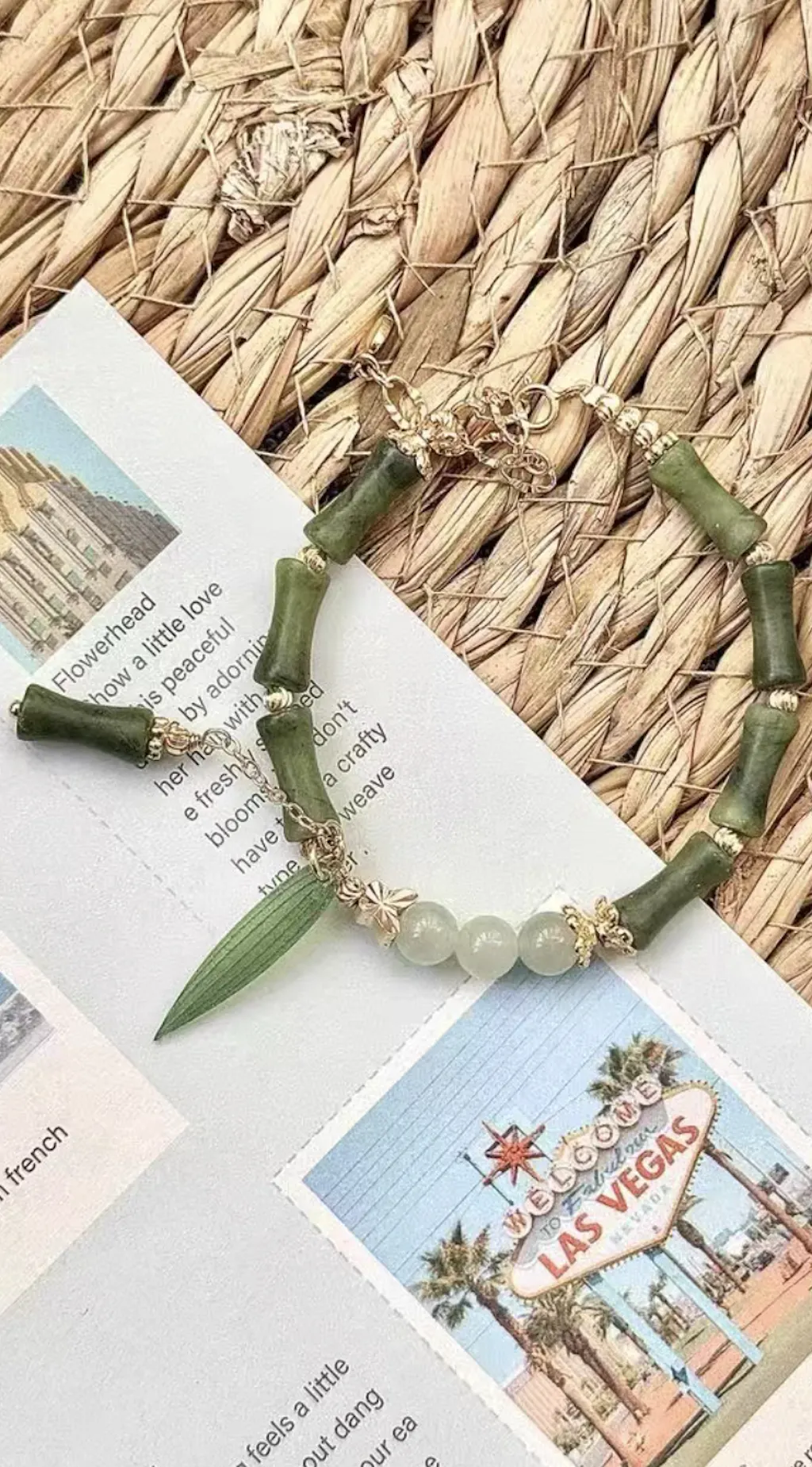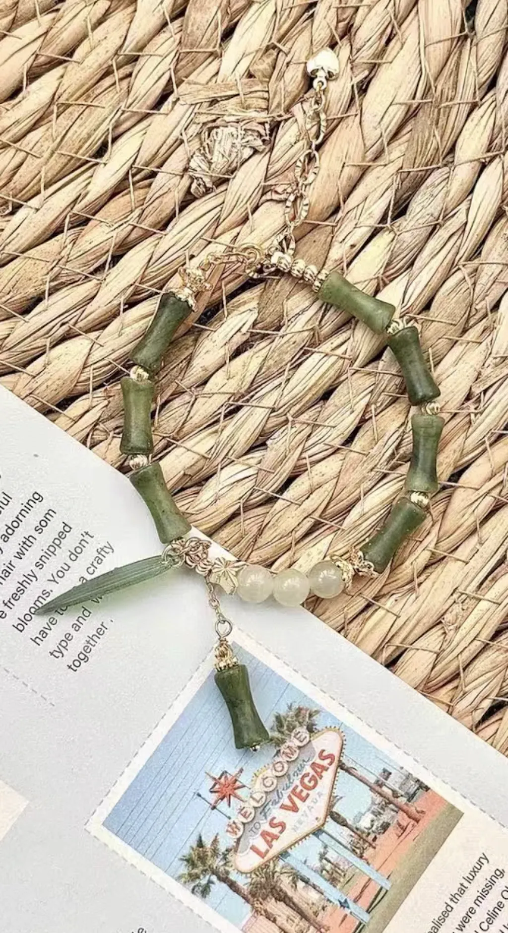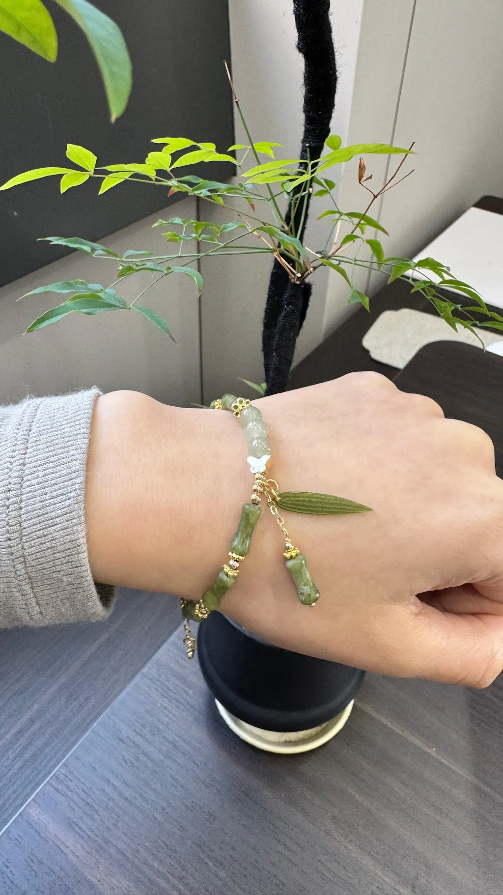Carefully assembled with smooth Hetian Jade beads and bamboo-inspired elements for a natural, refined look.